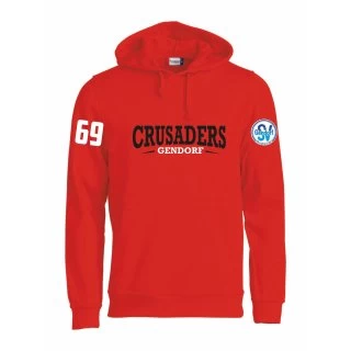 Elastische Kordel in der Kapuze und Kängurutasche.